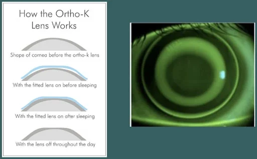 Orthokeratology contact lenses are custom gas permeable lenses that are worn overnight and removed upon waking, such that no spectacles or contact lenses are required for clear vision during the day. They can require more appointments for fitting than other types of myopia control treatment. Adaptation to the lens-on-eye feeling can take 1-2 weeks but shouldn’t affect sleep. There are significant benefits for water sports and active lifestyles, and since the contact lenses are only worn at home there is low risk of them being lost or broken during wear. Ortho-K treatment has been shown to be highly effective over the past few decades and is FDA-approved for the treatment of myopia progression.